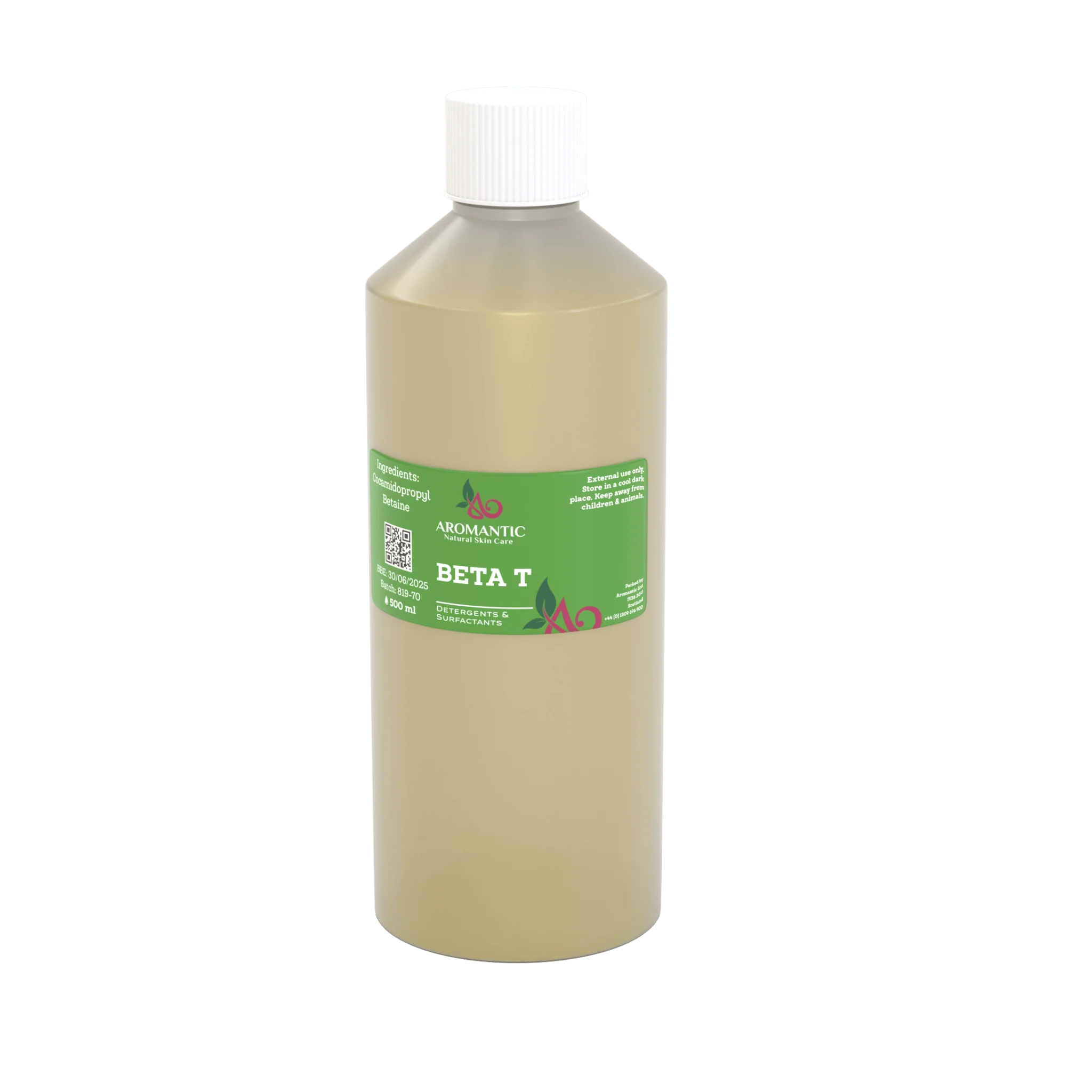 Beta T works well with anionic ingredients such as Alpha Detergent and Natural Surfactant Base, as well as nonionic ingredients such as Sugar Detergent.