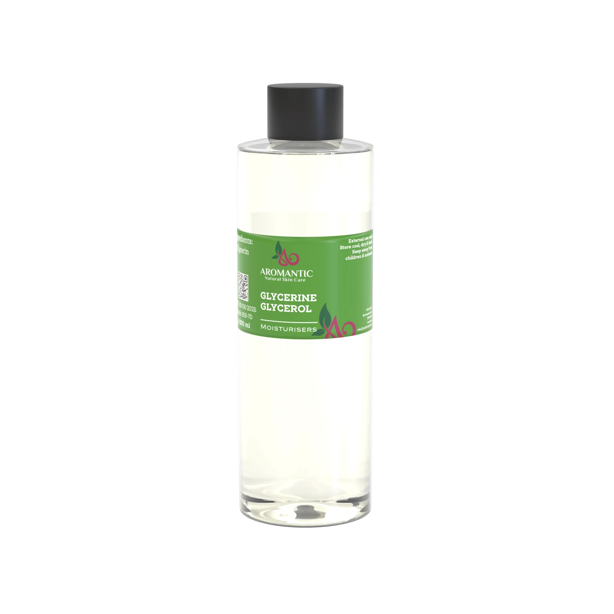 We use it in many of our skincare and haircare products because of its moisturising and softening properties. Aromantic’s Glycerine is made from oils such as rapeseed oil, so it’s 100% vegetable-derived and suitable for vegan formulations.